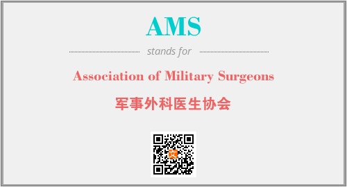 上述内容是“Association of Military Surgeons”作为“AMS”的缩写,解释为“军事外科医生协会”时的信息,以及英文缩略词AMS所代表的英文单词,其对应的中文拼音、详细解释以及在英文中的流行度和相关分类、应用领域及应用示例等。