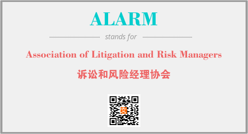 上述内容是“Association of Litigation and Risk Managers”作为“ALARM”的缩写,解释为“诉讼和风险经理协会”时的信息,以及英文缩略词ALARM所代表的英文单词,其对应的中文拼音、详细解释以及在英文中的流行度和相关分类、应用领域及应用示例等。