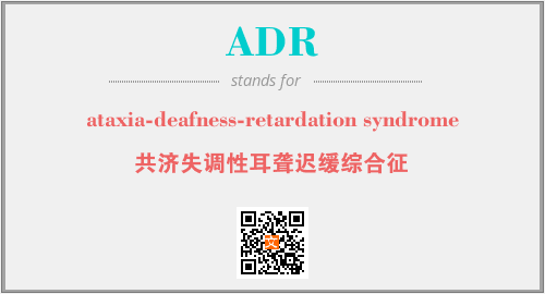 英文缩略词“ADR”经常作为“ataxia-deafness-retardation syndrome”的英文缩写来使用,中文表示:“共济失调性耳聋迟缓综合征”。本文将详细介绍英文缩写词ADR所代表英文单词,其对应的中文拼音、详细解释以及在英语中的流行度。此外,还有关于缩略词ADR的分类、应用领域及相关应用示例等。