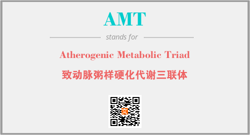 上述内容是“Atherogenic Metabolic Triad”作为“AMT”的缩写,解释为“致动脉粥样硬化代谢三联体”时的信息,以及英文缩略词AMT所代表的英文单词,其对应的中文拼音、详细解释以及在英文中的流行度和相关分类、应用领域及应用示例等。