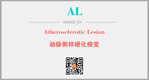 上述内容是“Atherosclerotic Lesion”作为“AL”的缩写,解释为“动脉粥样硬化病变”时的信息,以及英文缩略词AL所代表的英文单词,其对应的中文拼音、详细解释以及在英文中的流行度和相关分类、应用领域及应用示例等。