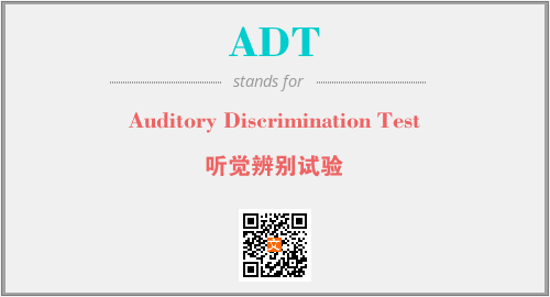 英文缩略词“ADT”经常作为“Auditory Discrimination Test”的英文缩写来使用,中文表示:“听觉辨别试验”。本文将详细介绍英文缩写词ADT所代表英文单词,其对应的中文拼音、详细解释以及在英语中的流行度。此外,还有关于缩略词ADT的分类、应用领域及相关应用示例等。