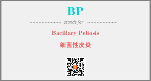 上述内容是“Bacillary Peliosis”作为“BP”的缩写,解释为“细菌性皮炎”时的信息,以及英文缩略词BP所代表的英文单词,其对应的中文拼音、详细解释以及在英文中的流行度和相关分类、应用领域及应用示例等。