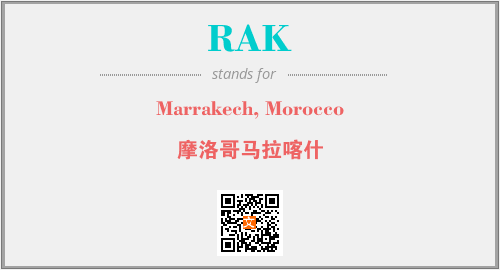上述内容是“Marrakech, Morocco”作为“RAK”的缩写,解释为“摩洛哥马拉喀什”时的信息,以及英文缩略词RAK所代表的英文单词,其对应的中文拼音、详细解释以及在英文中的流行度和相关分类、应用领域及应用示例等。