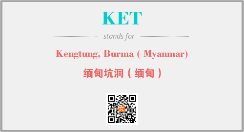 英文缩略词“KET”经常作为“Kengtung, Burma ( Myanmar)”的英文缩写来使用,中文表示:“缅甸坑洞(缅甸)”。本文将详细介绍英文缩写词KET所代表英文单词,其对应的中文拼音、详细解释以及在英语中的流行度。此外,还有关于缩略词KET的分类、应用领域及相关应用示例等。