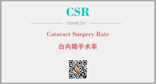 英文缩略词“CSR”经常作为“Cataract Surgery Rate”的英文缩写来使用,中文表示:“白内障手术率”。本文将详细介绍英文缩写词CSR所代表英文单词,其对应的中文拼音、详细解释以及在英语中的流行度。此外,还有关于缩略词CSR的分类、应用领域及相关应用示例等。