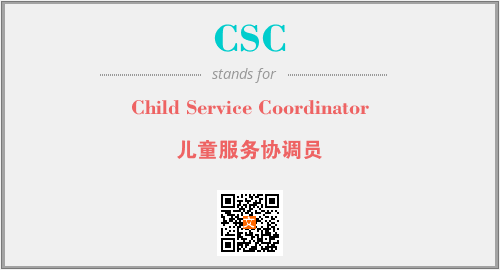 英文缩略词“CSC”经常作为“Child Service Coordinator”的英文缩写来使用,中文表示:“儿童服务协调员”。本文将详细介绍英文缩写词CSC所代表英文单词,其对应的中文拼音、详细解释以及在英语中的流行度。此外,还有关于缩略词CSC的分类、应用领域及相关应用示例等。