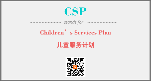 上述内容是“Children’s Services Plan”作为“CSP”的缩写,解释为“儿童服务计划”时的信息,以及英文缩略词CSP所代表的英文单词,其对应的中文拼音、详细解释以及在英文中的流行度和相关分类、应用领域及应用示例等。