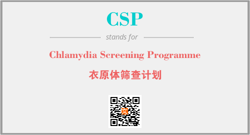 英文缩略词“CSP”经常作为“Chlamydia Screening Programme”的英文缩写来使用,中文表示:“衣原体筛查计划”。本文将详细介绍英文缩写词CSP所代表英文单词,其对应的中文拼音、详细解释以及在英语中的流行度。此外,还有关于缩略词CSP的分类、应用领域及相关应用示例等。