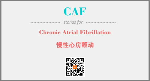 上述内容是“Chronic Atrial Fibrillation”作为“CAF”的缩写,解释为“慢性心房颤动”时的信息,以及英文缩略词CAF所代表的英文单词,其对应的中文拼音、详细解释以及在英文中的流行度和相关分类、应用领域及应用示例等。