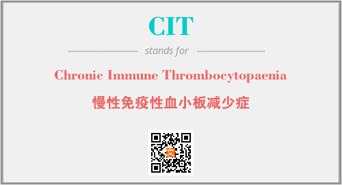 英文缩略词“CIT”经常作为“Chronic Immune Thrombocytopaenia”的英文缩写来使用,中文表示:“慢性免疫性血小板减少症”。本文将详细介绍英文缩写词CIT所代表英文单词,其对应的中文拼音、详细解释以及在英语中的流行度。此外,还有关于缩略词CIT的分类、应用领域及相关应用示例等。