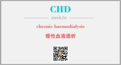 英文缩略词“CHD”经常作为“chronic haemodialysis”的英文缩写来使用,中文表示:“慢性血液透析”。本文将详细介绍英文缩写词CHD所代表英文单词,其对应的中文拼音、详细解释以及在英语中的流行度。此外,还有关于缩略词CHD的分类、应用领域及相关应用示例等。