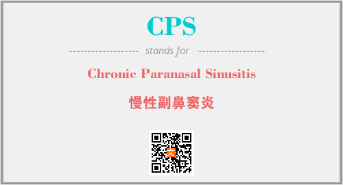 上述内容是“Chronic Paranasal Sinusitis”作为“CPS”的缩写,解释为“慢性副鼻窦炎”时的信息,以及英文缩略词CPS所代表的英文单词,其对应的中文拼音、详细解释以及在英文中的流行度和相关分类、应用领域及应用示例等。