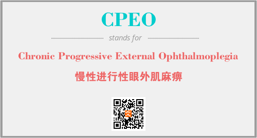 英文缩略词“CPEO”经常作为“Chronic Progressive External Ophthalmoplegia”的英文缩写来使用,中文表示:“慢性进行性眼外肌麻痹”。本文将详细介绍英文缩写词CPEO所代表英文单词,其对应的中文拼音、详细解释以及在英语中的流行度。此外,还有关于缩略词CPEO的分类、应用领域及相关应用示例等。