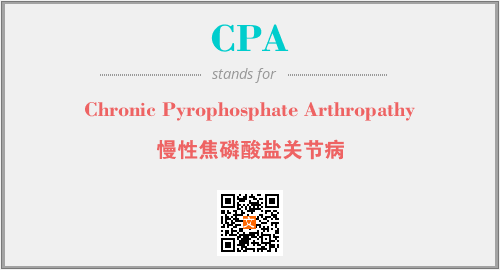 英文缩略词“CPA”经常作为“Chronic Pyrophosphate Arthropathy”的英文缩写来使用,中文表示:“慢性焦磷酸盐关节病”。本文将详细介绍英文缩写词CPA所代表英文单词,其对应的中文拼音、详细解释以及在英语中的流行度。此外,还有关于缩略词CPA的分类、应用领域及相关应用示例等。
