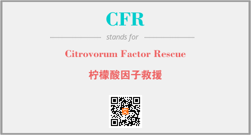上述内容是“Citrovorum Factor Rescue”作为“CFR”的缩写,解释为“柠檬酸因子救援”时的信息,以及英文缩略词CFR所代表的英文单词,其对应的中文拼音、详细解释以及在英文中的流行度和相关分类、应用领域及应用示例等。