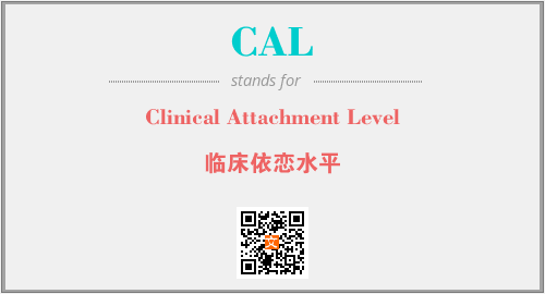 上述内容是“Clinical Attachment Level”作为“CAL”的缩写,解释为“临床依恋水平”时的信息,以及英文缩略词CAL所代表的英文单词,其对应的中文拼音、详细解释以及在英文中的流行度和相关分类、应用领域及应用示例等。
