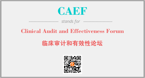 英文缩略词“CAEF”经常作为“Clinical Audit and Effectiveness Forum”的英文缩写来使用,中文表示:“临床审计和有效性论坛”。本文将详细介绍英文缩写词CAEF所代表英文单词,其对应的中文拼音、详细解释以及在英语中的流行度。此外,还有关于缩略词CAEF的分类、应用领域及相关应用示例等。