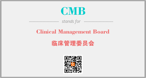 上述内容是“Clinical Management Board”作为“CMB”的缩写,解释为“临床管理委员会”时的信息,以及英文缩略词CMB所代表的英文单词,其对应的中文拼音、详细解释以及在英文中的流行度和相关分类、应用领域及应用示例等。