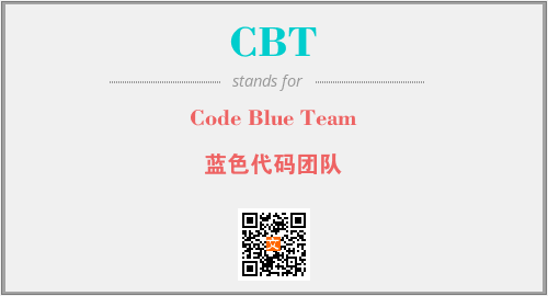 英文缩略词“CBT”经常作为“Code Blue Team”的英文缩写来使用,中文表示:“蓝色代码团队”。本文将详细介绍英文缩写词CBT所代表英文单词,其对应的中文拼音、详细解释以及在英语中的流行度。此外,还有关于缩略词CBT的分类、应用领域及相关应用示例等。