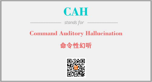 上述内容是“Command Auditory Hallucination”作为“CAH”的缩写,解释为“命令性幻听”时的信息,以及英文缩略词CAH所代表的英文单词,其对应的中文拼音、详细解释以及在英文中的流行度和相关分类、应用领域及应用示例等。