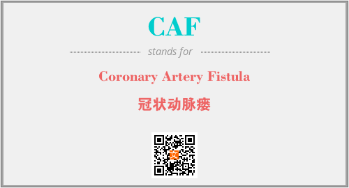 上述内容是“Coronary Artery Fistula”作为“CAF”的缩写,解释为“冠状动脉瘘”时的信息,以及英文缩略词CAF所代表的英文单词,其对应的中文拼音、详细解释以及在英文中的流行度和相关分类、应用领域及应用示例等。