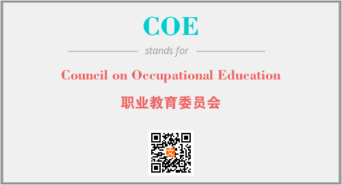 英文缩略词“COE”经常作为“Council on Occupational Education”的英文缩写来使用,中文表示:“职业教育委员会”。本文将详细介绍英文缩写词COE所代表英文单词,其对应的中文拼音、详细解释以及在英语中的流行度。此外,还有关于缩略词COE的分类、应用领域及相关应用示例等。