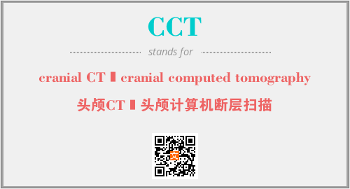 上述内容是“cranial CT–cranial computed tomography”作为“CCT”的缩写,解释为“头颅CT–头颅计算机断层扫描”时的信息,以及英文缩略词CCT所代表的英文单词,其对应的中文拼音、详细解释以及在英文中的流行度和相关分类、应用领域及应用示例等。