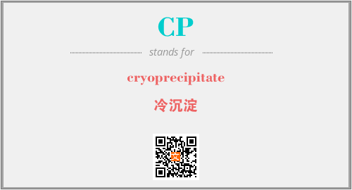 以上为cryoprecipitate英文缩略词CP的中文解释,以及该英文缩写在英语的流行度、分类和应用领域方面的信息。
