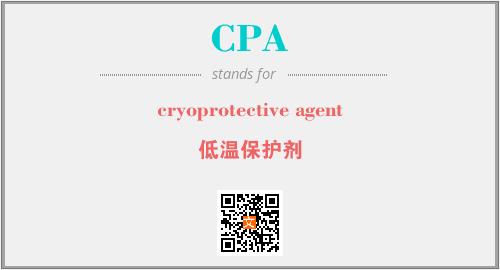 上述内容是“cryoprotective agent”作为“CPA”的缩写,解释为“低温保护剂”时的信息,以及英文缩略词CPA所代表的英文单词,其对应的中文拼音、详细解释以及在英文中的流行度和相关分类、应用领域及应用示例等。