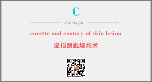 英文缩略词“C”经常作为“curette and cautery of skin lesion”的英文缩写来使用,中文表示:“皮损刮匙烧灼术”。本文将详细介绍英文缩写词C所代表英文单词,其对应的中文拼音、详细解释以及在英语中的流行度。此外,还有关于缩略词C的分类、应用领域及相关应用示例等。