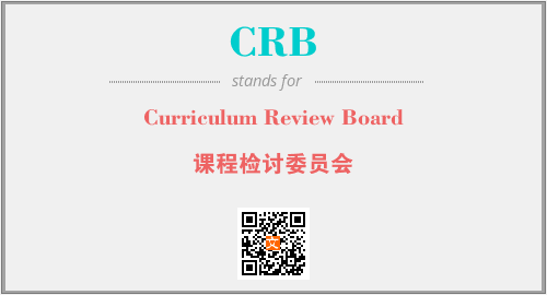 英文缩略词“CRB”经常作为“Curriculum Review Board”的英文缩写来使用,中文表示:“课程检讨委员会”。本文将详细介绍英文缩写词CRB所代表英文单词,其对应的中文拼音、详细解释以及在英语中的流行度。此外,还有关于缩略词CRB的分类、应用领域及相关应用示例等。