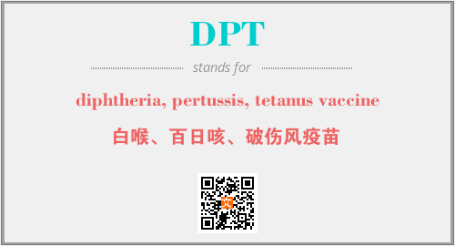 以上为diphtheria, pertussis, tetanus vaccine英文缩略词DPT的中文解释,以及该英文缩写在英语的流行度、分类和应用领域方面的信息。