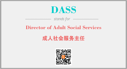 上述内容是“Director of Adult Social Services”作为“DASS”的缩写,解释为“成人社会服务主任”时的信息,以及英文缩略词DASS所代表的英文单词,其对应的中文拼音、详细解释以及在英文中的流行度和相关分类、应用领域及应用示例等。