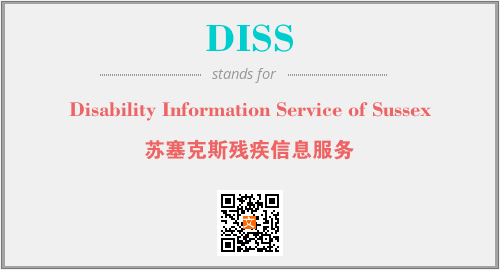 上述内容是“Disability Information Service of Sussex”作为“DISS”的缩写,解释为“苏塞克斯残疾信息服务”时的信息,以及英文缩略词DISS所代表的英文单词,其对应的中文拼音、详细解释以及在英文中的流行度和相关分类、应用领域及应用示例等。