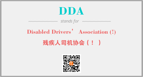 英文缩略词“DDA”经常作为“Disabled Drivers’ Association (!)”的英文缩写来使用,中文表示:“残疾人司机协会(!)”。本文将详细介绍英文缩写词DDA所代表英文单词,其对应的中文拼音、详细解释以及在英语中的流行度。此外,还有关于缩略词DDA的分类、应用领域及相关应用示例等。