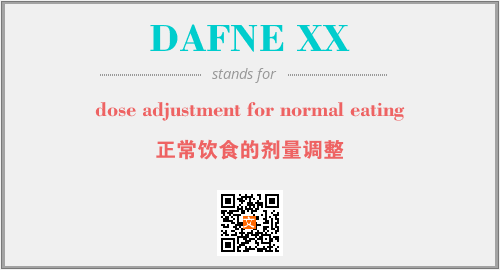 上述内容是“dose adjustment for normal eating”作为“DAFNE XX”的缩写,解释为“正常饮食的剂量调整”时的信息,以及英文缩略词DAFNE XX所代表的英文单词,其对应的中文拼音、详细解释以及在英文中的流行度和相关分类、应用领域及应用示例等。