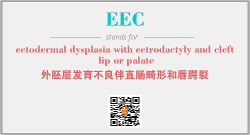 上述内容是“ectodermal dysplasia with ectrodactyly and cleft lip or palate”作为“EEC”的缩写,解释为“外胚层发育不良伴直肠畸形和唇腭裂”时的信息,以及英文缩略词EEC所代表的英文单词,其对应的中文拼音、详细解释以及在英文中的流行度和相关分类、应用领域及应用示例等。