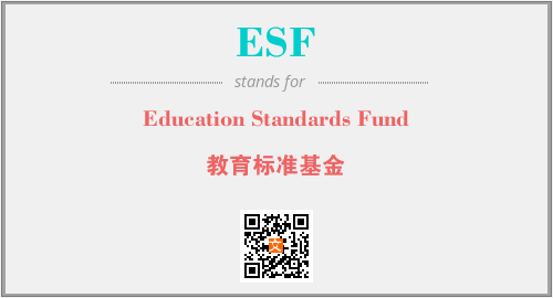 英文缩略词“ESF”经常作为“Education Standards Fund”的英文缩写来使用,中文表示:“教育标准基金”。本文将详细介绍英文缩写词ESF所代表英文单词,其对应的中文拼音、详细解释以及在英语中的流行度。此外,还有关于缩略词ESF的分类、应用领域及相关应用示例等。