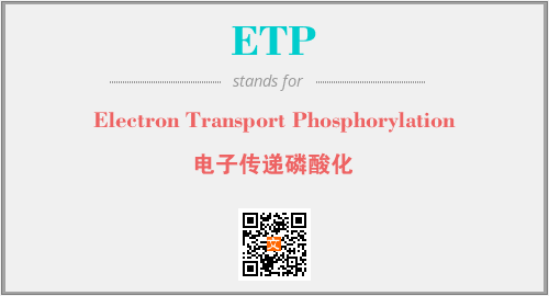 上述内容是“Electron Transport Phosphorylation”作为“ETP”的缩写,解释为“电子传递磷酸化”时的信息,以及英文缩略词ETP所代表的英文单词,其对应的中文拼音、详细解释以及在英文中的流行度和相关分类、应用领域及应用示例等。