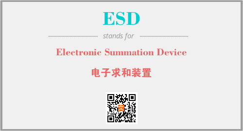 英文缩略词“ESD”经常作为“Electronic Summation Device”的英文缩写来使用,中文表示:“电子求和装置”。本文将详细介绍英文缩写词ESD所代表英文单词,其对应的中文拼音、详细解释以及在英语中的流行度。此外,还有关于缩略词ESD的分类、应用领域及相关应用示例等。