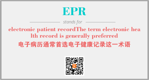 上述内容是“electronic patient recordThe term electronic health record is generally preferred”作为“EPR”的缩写,解释为“电子病历通常首选电子健康记录这一术语”时的信息,以及英文缩略词EPR所代表的英文单词,其对应的中文拼音、详细解释以及在英文中的流行度和相关分类、应用领域及应用示例等。