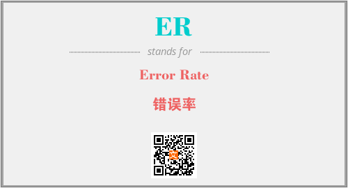 英文缩略词“ER”经常作为“Error Rate”的英文缩写来使用,中文表示:“错误率”。本文将详细介绍英文缩写词ER所代表英文单词,其对应的中文拼音、详细解释以及在英语中的流行度。此外,还有关于缩略词ER的分类、应用领域及相关应用示例等。