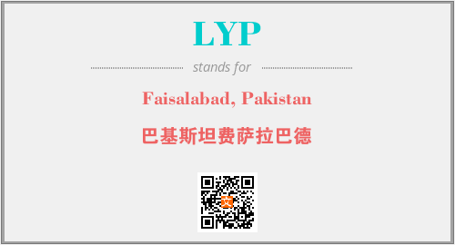 上述内容是“Faisalabad, Pakistan”作为“LYP”的缩写,解释为“巴基斯坦费萨拉巴德”时的信息,以及英文缩略词LYP所代表的英文单词,其对应的中文拼音、详细解释以及在英文中的流行度和相关分类、应用领域及应用示例等。