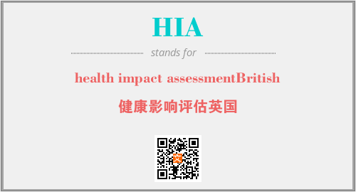 上述内容是“health impact assessmentBritish”作为“HIA”的缩写,解释为“健康影响评估英国”时的信息,以及英文缩略词HIA所代表的英文单词,其对应的中文拼音、详细解释以及在英文中的流行度和相关分类、应用领域及应用示例等。