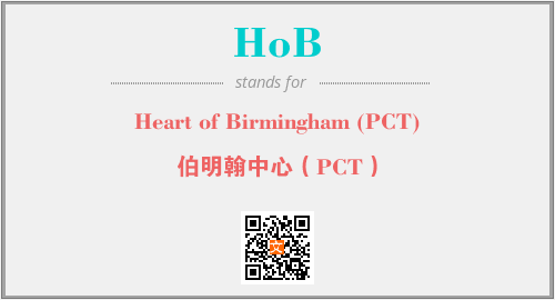 上述内容是“Heart of Birmingham (PCT)”作为“HoB”的缩写,解释为“伯明翰中心(PCT)”时的信息,以及英文缩略词HoB所代表的英文单词,其对应的中文拼音、详细解释以及在英文中的流行度和相关分类、应用领域及应用示例等。