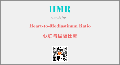 上述内容是“Heart-to-Mediastinum Ratio”作为“HMR”的缩写,解释为“心脏与纵隔比率”时的信息,以及英文缩略词HMR所代表的英文单词,其对应的中文拼音、详细解释以及在英文中的流行度和相关分类、应用领域及应用示例等。