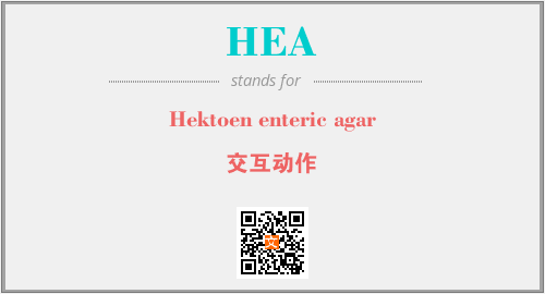 上述内容是“Hektoen enteric agar”作为“HEA”的缩写,解释为“交互动作”时的信息,以及英文缩略词HEA所代表的英文单词,其对应的中文拼音、详细解释以及在英文中的流行度和相关分类、应用领域及应用示例等。