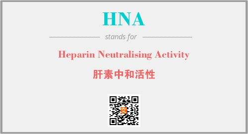 上述内容是“Heparin Neutralising Activity”作为“HNA”的缩写,解释为“肝素中和活性”时的信息,以及英文缩略词HNA所代表的英文单词,其对应的中文拼音、详细解释以及在英文中的流行度和相关分类、应用领域及应用示例等。