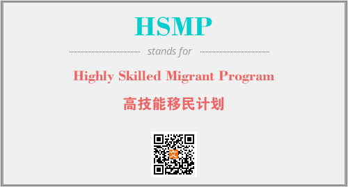 以上为Highly Skilled Migrant Program英文缩略词HSMP的中文解释,以及该英文缩写在英语的流行度、分类和应用领域方面的信息。